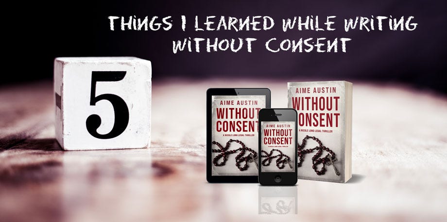 My goal with every book is to tell a great story and to become a better storyteller. While I'm sharing my nuanced understanding of the legal with readers, I'm also learning more about myself. As with every book I write I learn something new. Here's what Without Consent taught me: